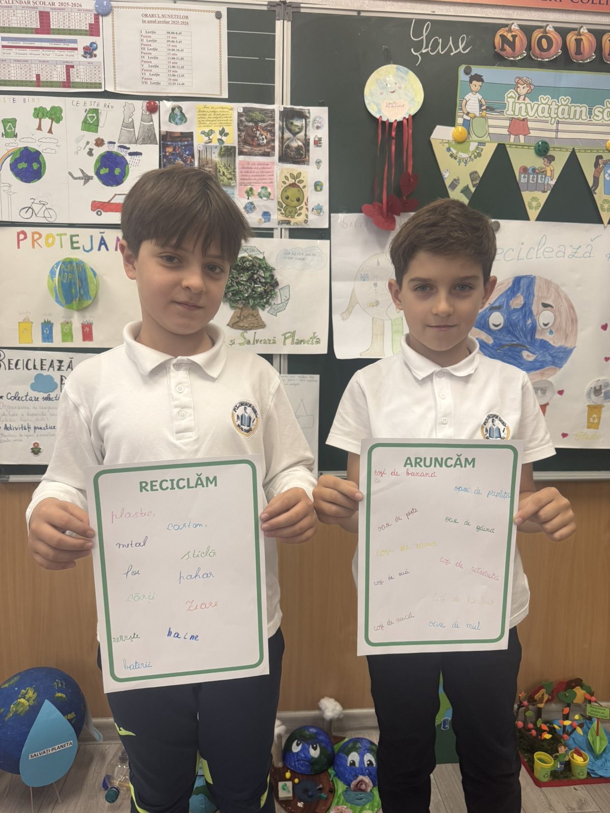 De asemenea, au fost organizate discuții despre poluare, consum responsabil și conservarea resurselor naturale, iar elevii au creat afișe și mesaje motivaționale cu scopul de a inspira și alți colegi să adopte un comportament ecologic.