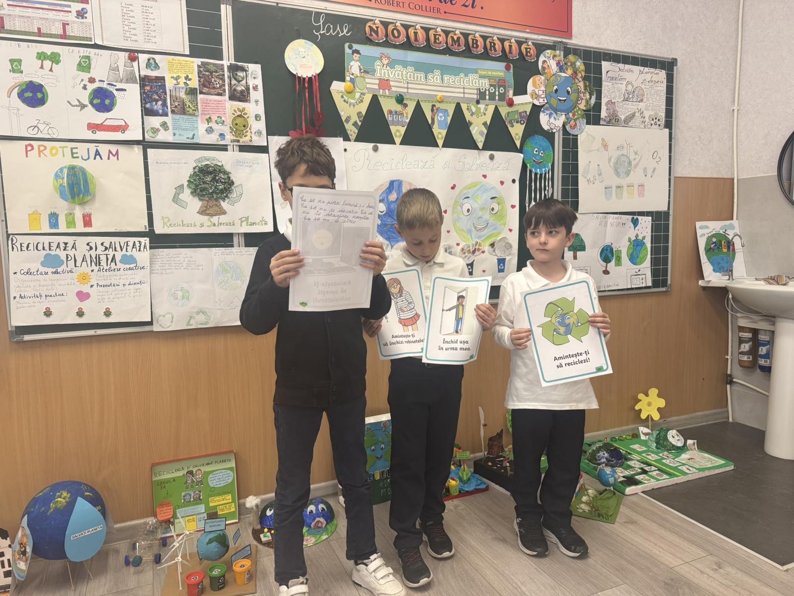 Activitățile s-au încheiat cu o expoziție de lucrări realizate din materiale reciclabile, prin care micii ecologiști au demonstrat cât de frumoase pot fi lucrurile atunci când sunt făcute cu grijă și dragoste pentru natură.