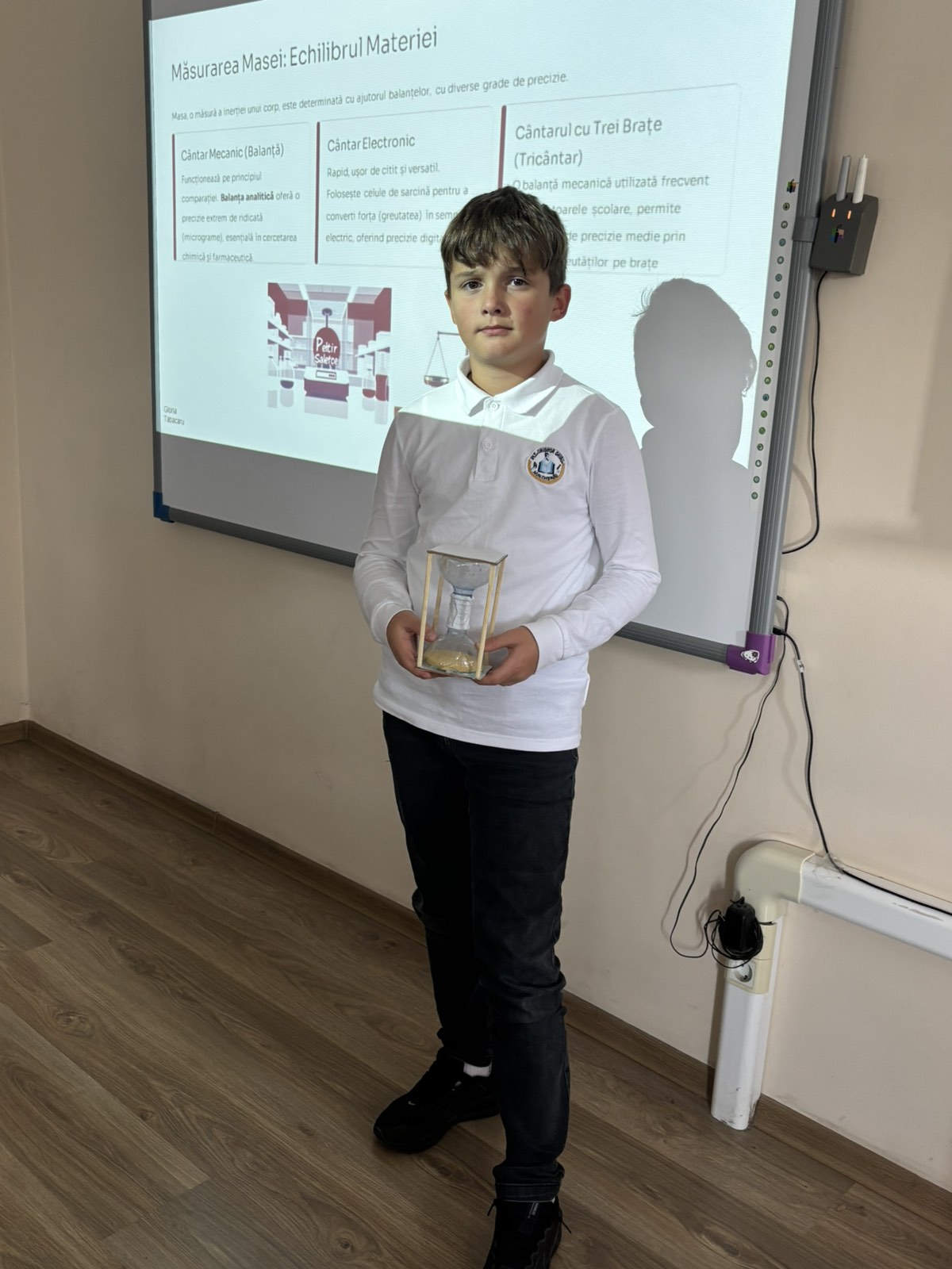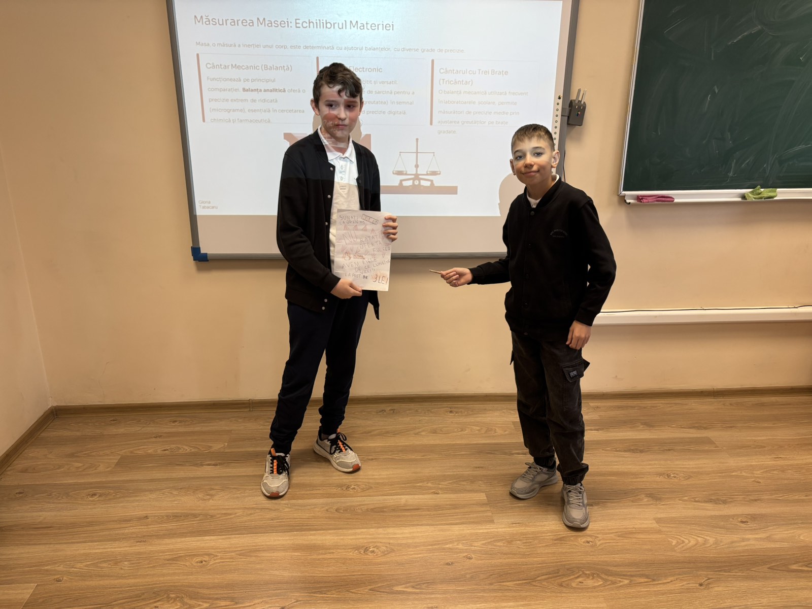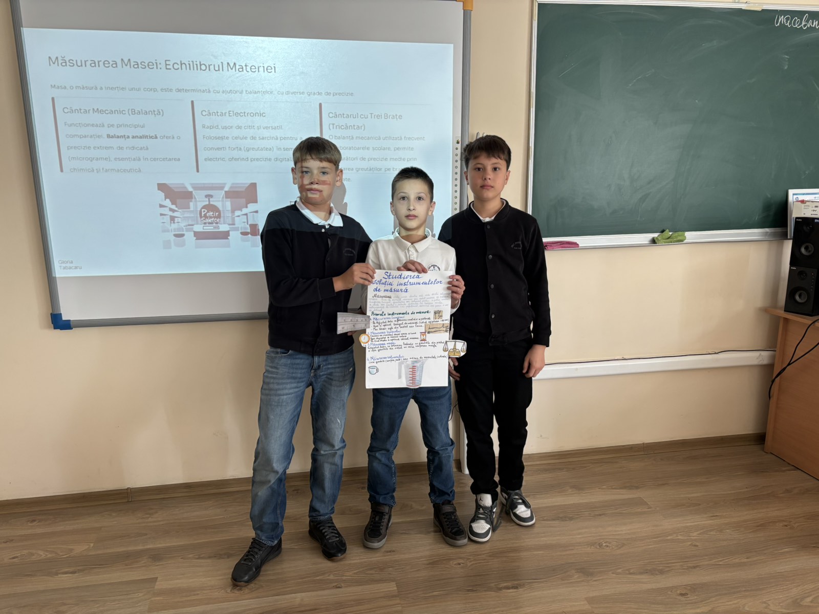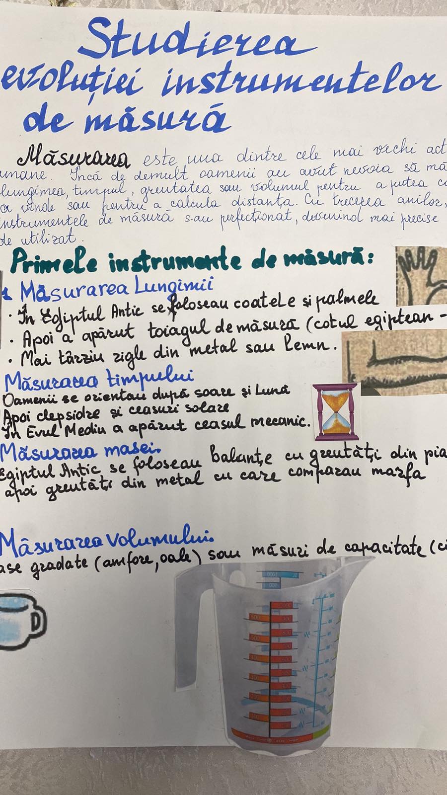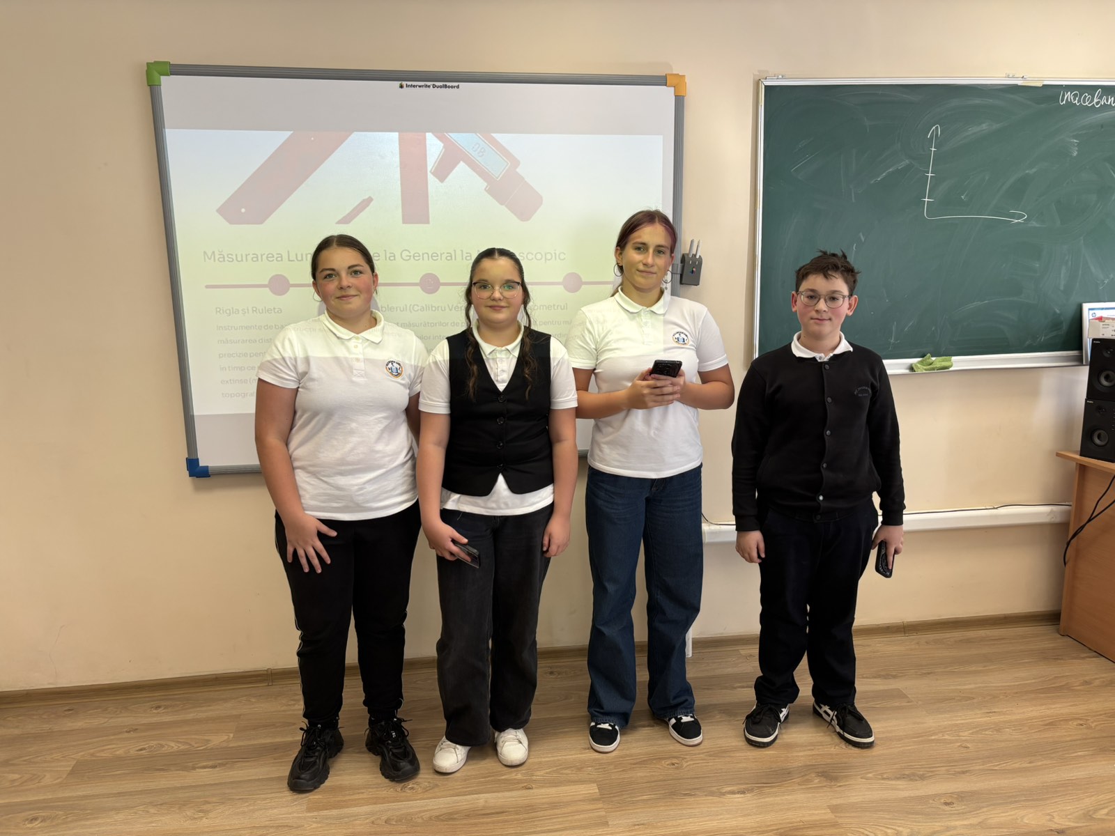 Elevii din echipa 3( Iarovoi Sofia, Lungu Nichita, Marcoci Marius, Pasincovschi Bianca-Smaranda, Plămădeală Bogdan, Plop Sorin, Popa David) s-au remarcat prin creativitate și spirit practic, fiecare realizând câte un instrument de măsură confecționat manual. Folosind materiale simple și ingeniozitate, elevii au reprodus rigle, clepsidre, ceasuri și alte instrumente, demonstrând înțelegerea principiilor de funcționare și aplicarea practică a cunoștințelor teoretice. Activitatea a îmbinat știința cu arta, punând în valoare atât precizia, cât și imaginația elevilor.