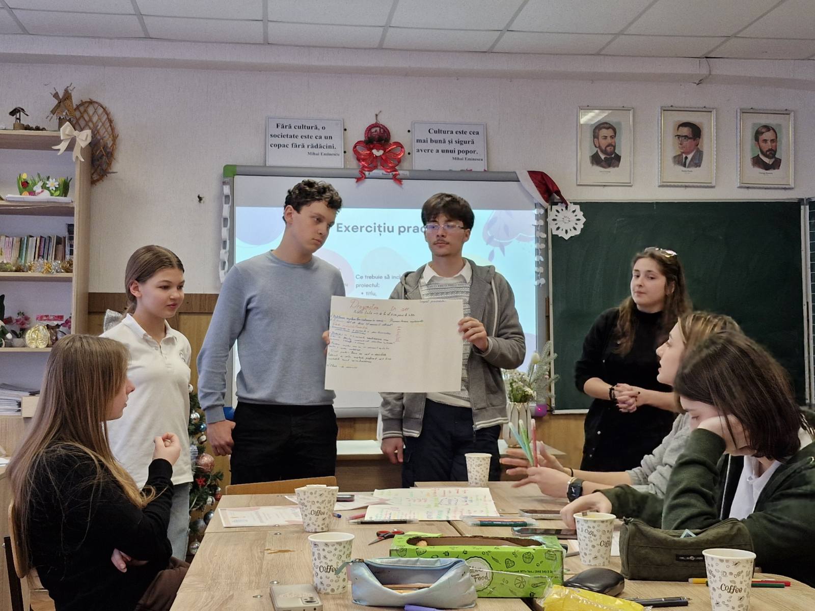 Găzduit de spațiul familiar al sălii de clasă, evenimentul s-a transformat într-un veritabil laborator de idei. După orele de curs, deși oboseala zilei ar fi putut fi un obstacol, elevii au găsit resurse de entuziasm, simțindu-se motivați de caracterul practic al activității. Întâlnirea a debutat sub semnul clarității: un proiect nu este doar o intenție, ci un „ansamblu de activități planificate, cu un scop clar și un rezultat concret”.