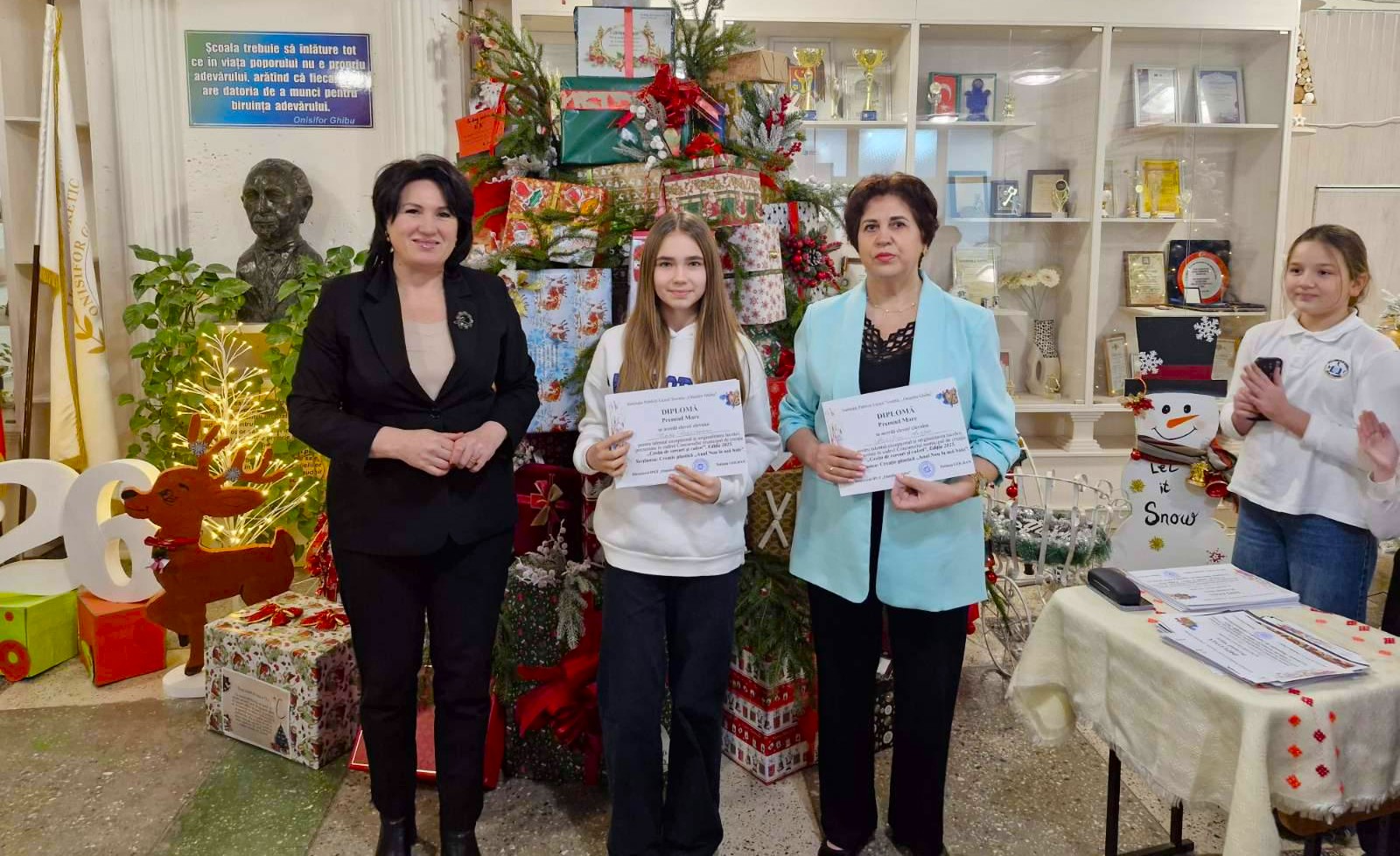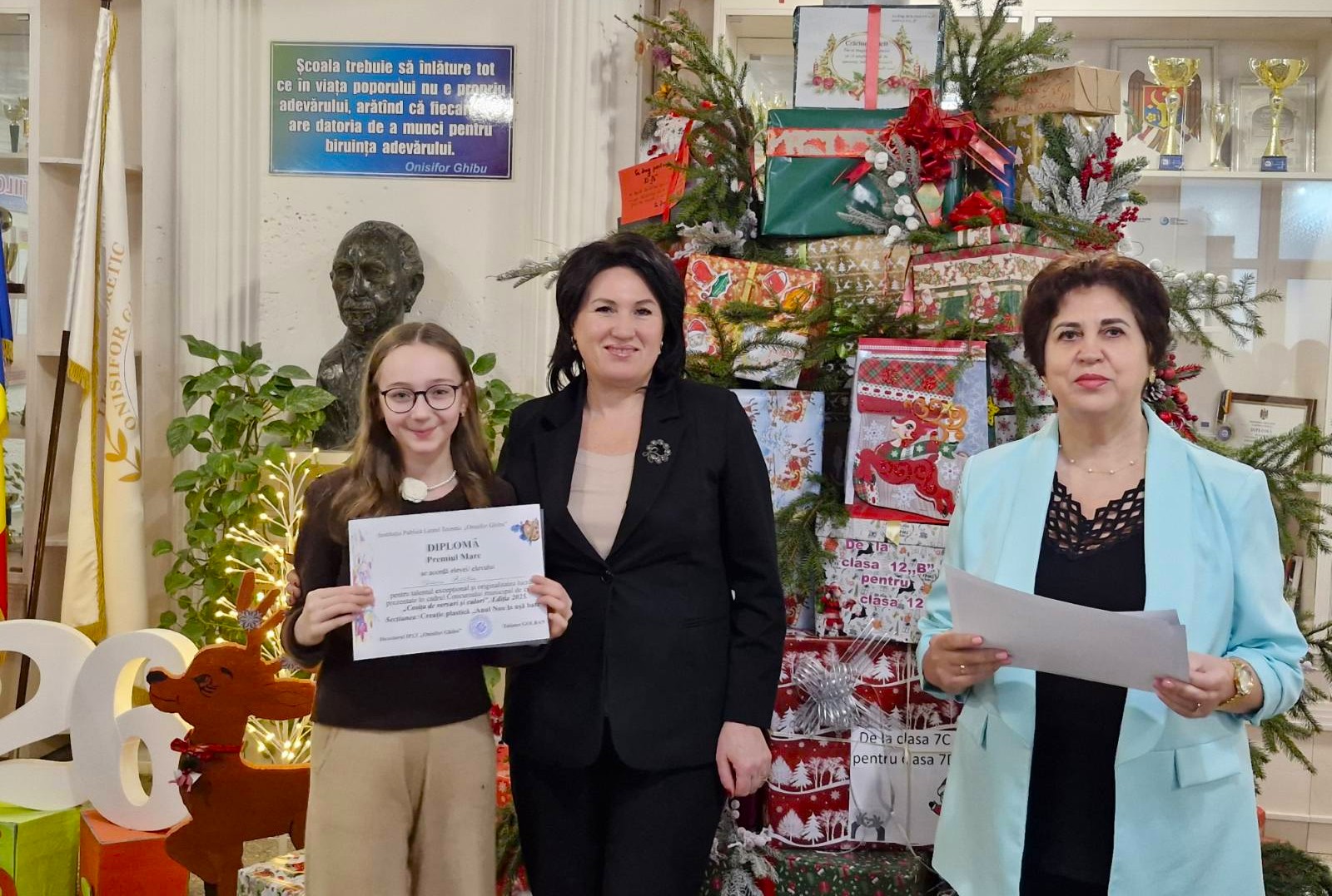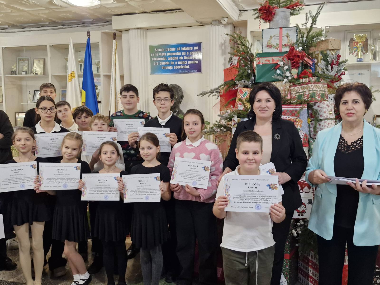 Ieri, 23.12.2025, holul IPLT „Onisifor Ghibu” s-a transformat într-o adevărată sărbătoare, plină de culoare și emoție. Doamna Tatiana GOLBAN, directoarea instituției, a acordat Diplome elevilor din clasele cu profil Are Plastice, creațiile cărora au fost apreciate la un nivel înalt în cadrul mai multor concursuri extracurriculare.