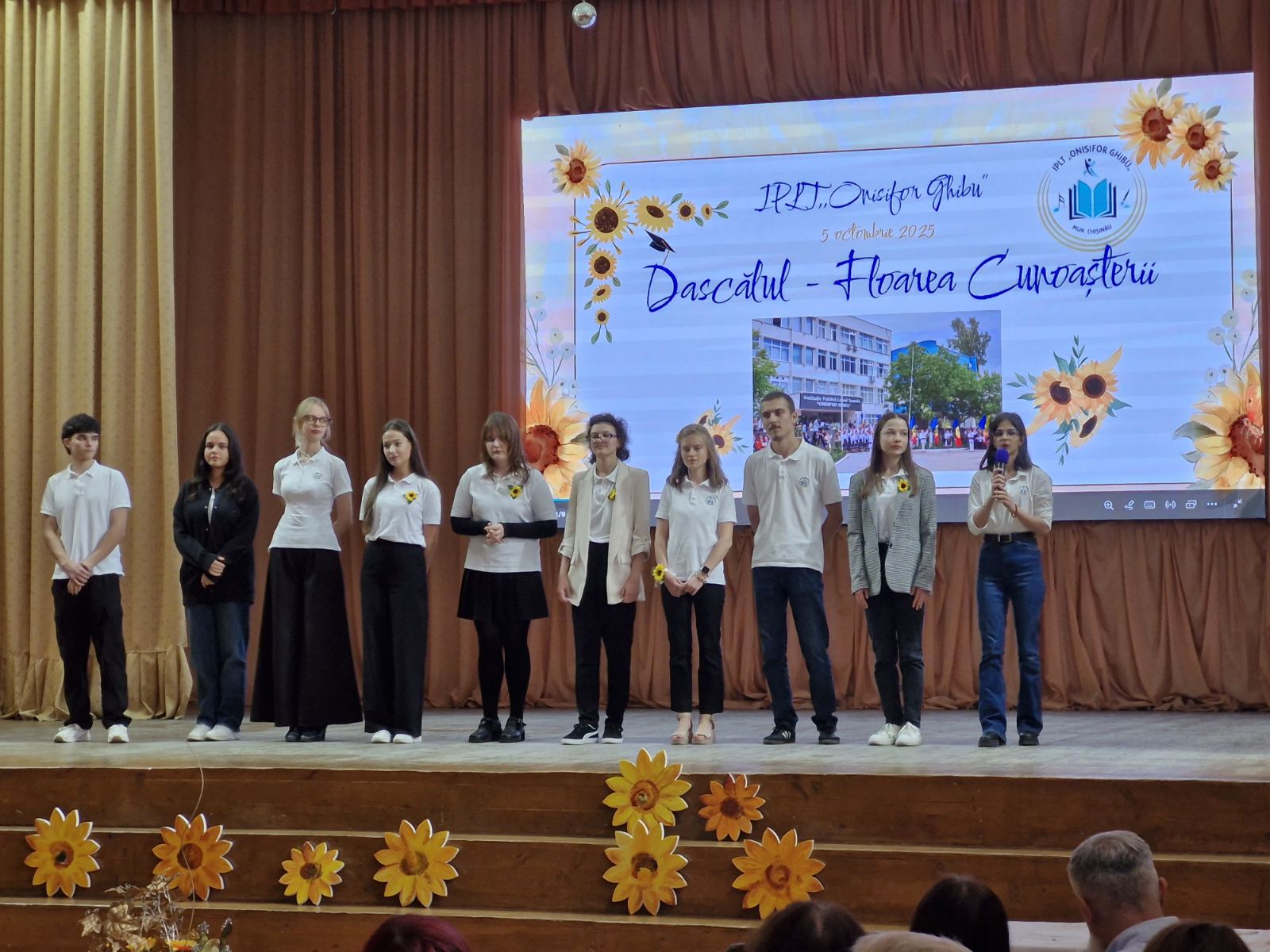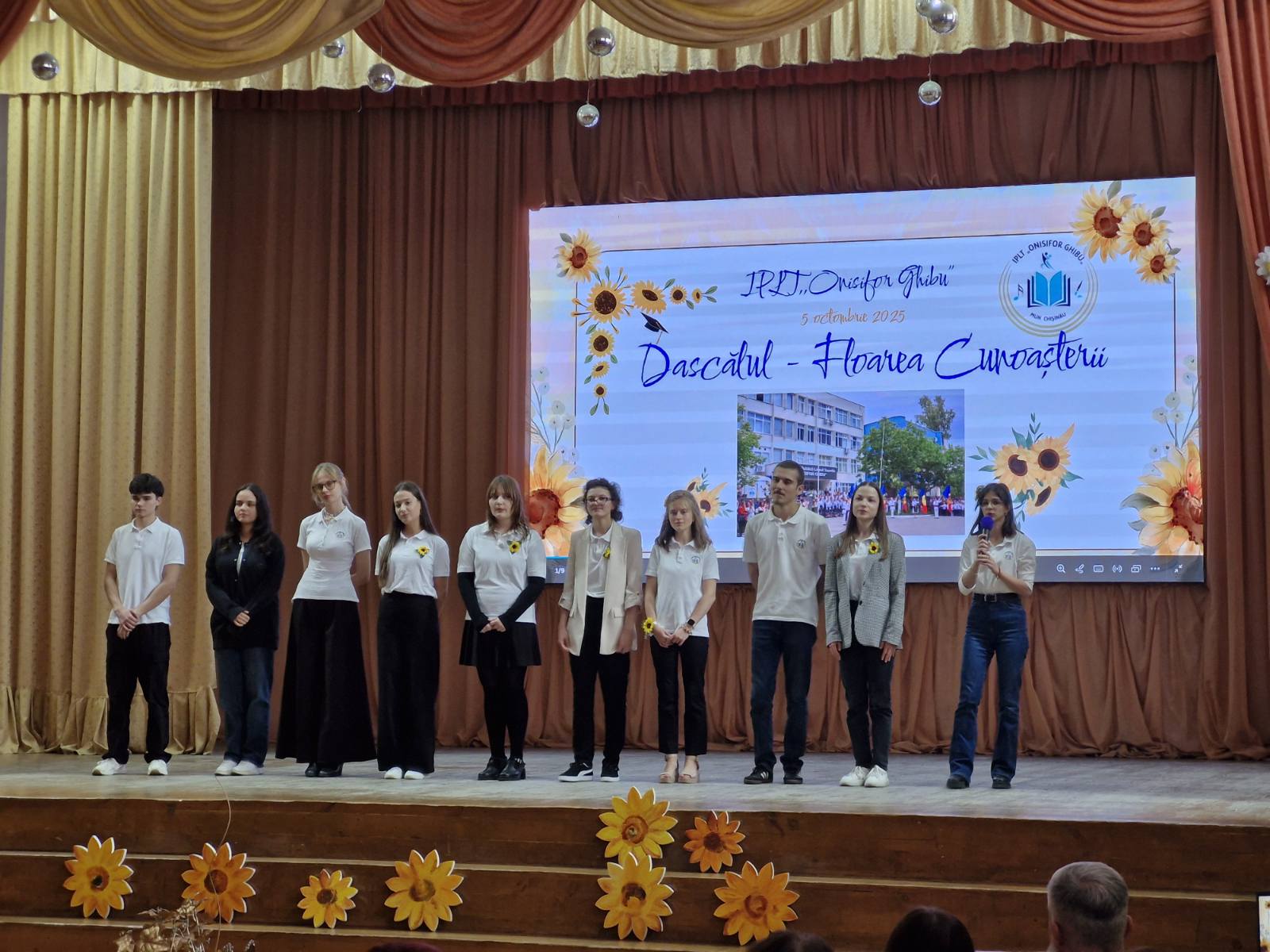 🌻 Elevii claselor a XII-a au adus în scenă „Legenda florii-soarelui”, o alegorie despre puterea luminii și a cunoașterii, simbol al dascălului care călăuzește cu blândețe și înțelepciune.
