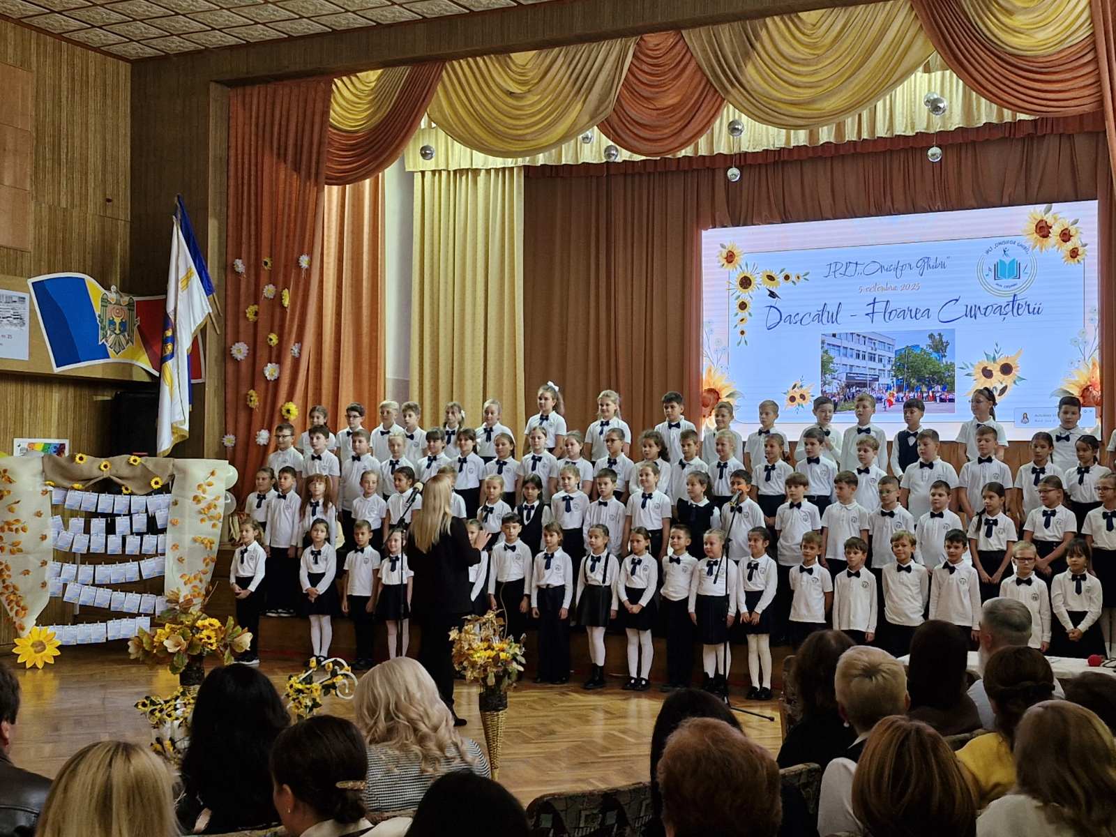 💃 Programul a continuat cu prestația plină de sensibilitate a Ansamblului „Gingășie”, coordonat de domnul Dumitru Nirca, care a adus pe scenă un tablou artistic dedicat profesorilor, învăluind sala în aplauze și emoții.