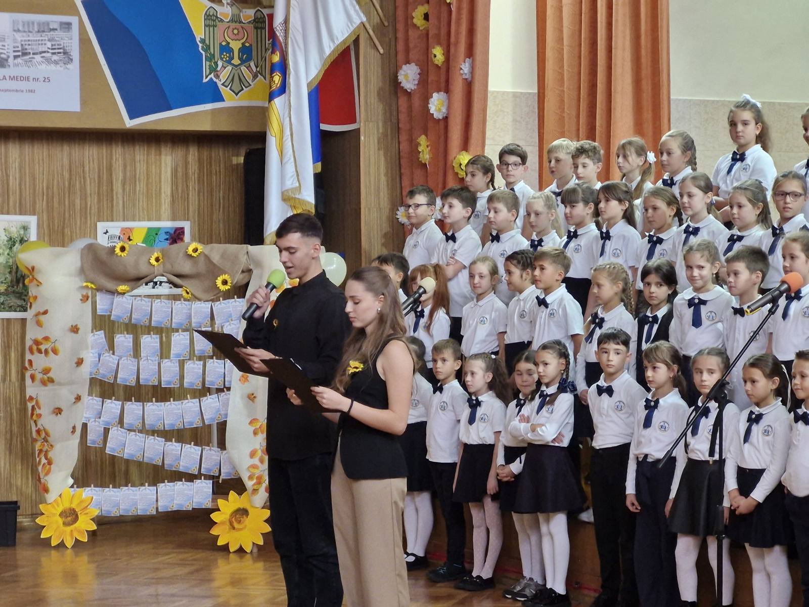 Sărbătoarea a continuat în sala de festivități, unde, la ora 13:00, elevii claselor a XII-a îndrumați de diriginții Angela Coșleț și Olesea Iftodi au pregătit un program artistic deosebit, plin de emoție, voie bună și creativitate.