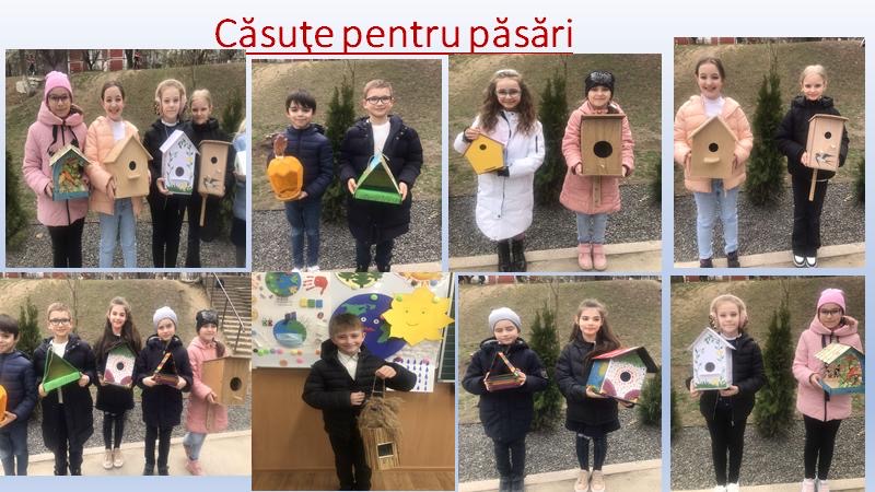 Elevii au identificat surse de poluare din comunitatea locală și au propus soluții creative pentru reducerea acestora. Prin afișe, prezentări și machete, copiii au transmis mesaje de conștientizare privind protejarea mediului. - Confecționarea căsuțelor pentru păsări