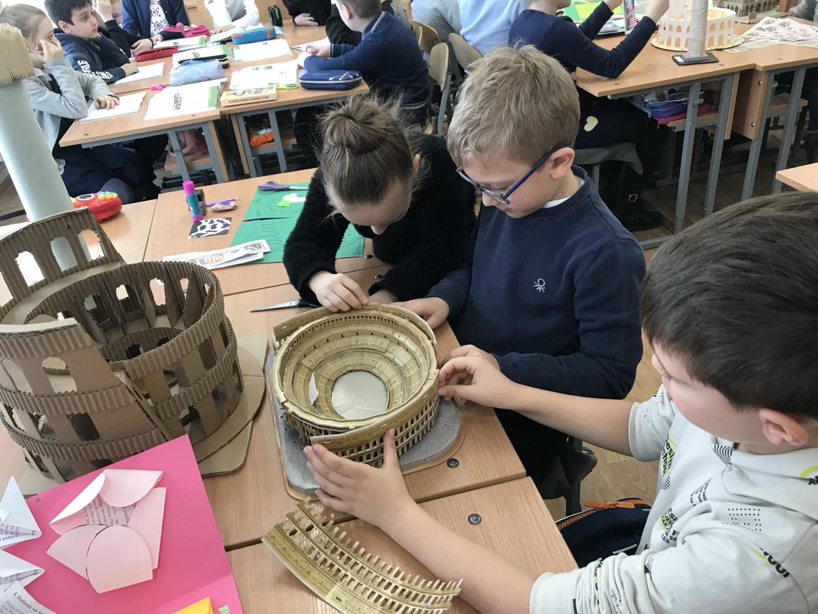 Inspirându-se din arhitectura istorică, elevii au construit replici ale celebrului Colosseum, folosind materiale diverse și tehnici creative. Proiectul a integrat elemente de istorie, inginerie și arte vizuale. - Mini-oraș inteligent