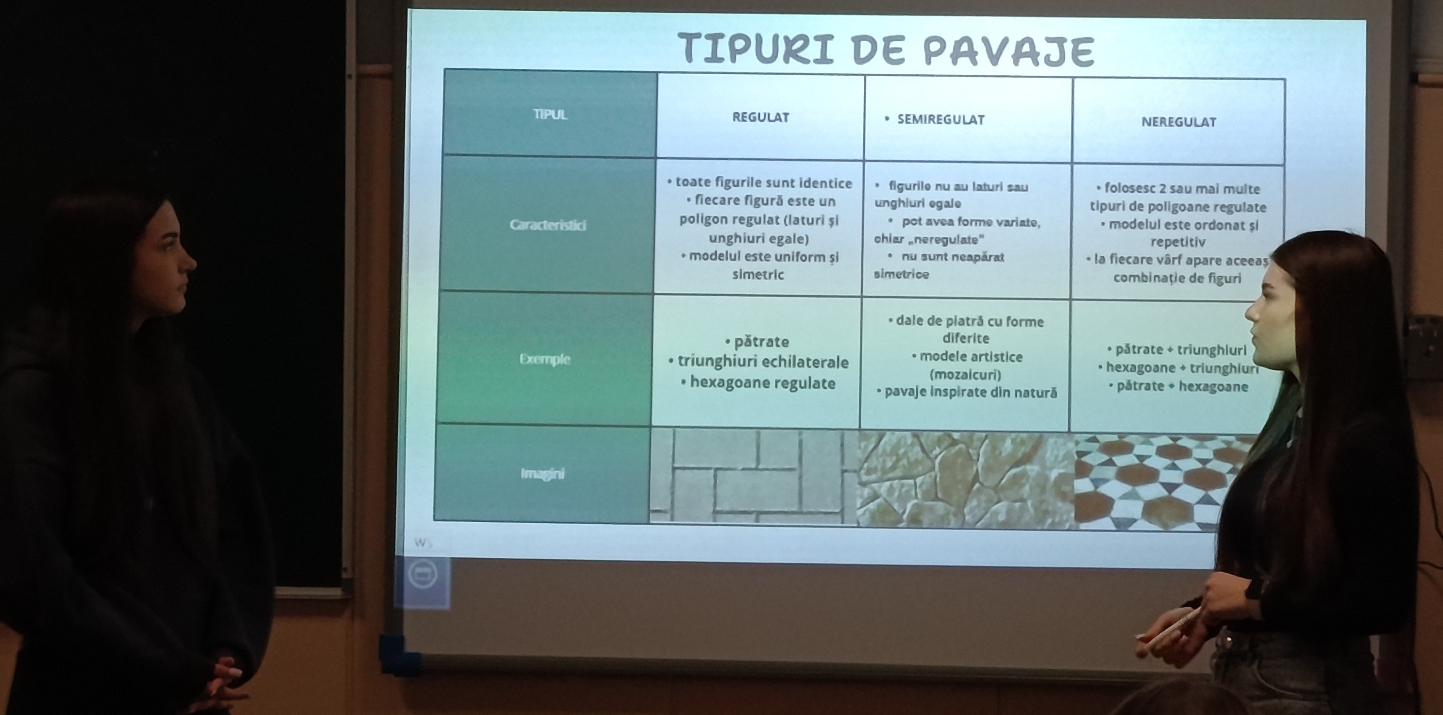 Pornind de la exemple întâlnite în viața de zi cu zi – modele din natură, mozaicuri artistice, construcții arhitecturale și amenajări urbane – elevii au analizat modul în care figurile geometrice se repetă și se îmbină perfect pentru a crea pavaje spectaculoase. Astfel, au descoperit că geometria nu este doar o disciplină școlară, ci un limbaj universal prezent pretutindeni în jurul nostru.