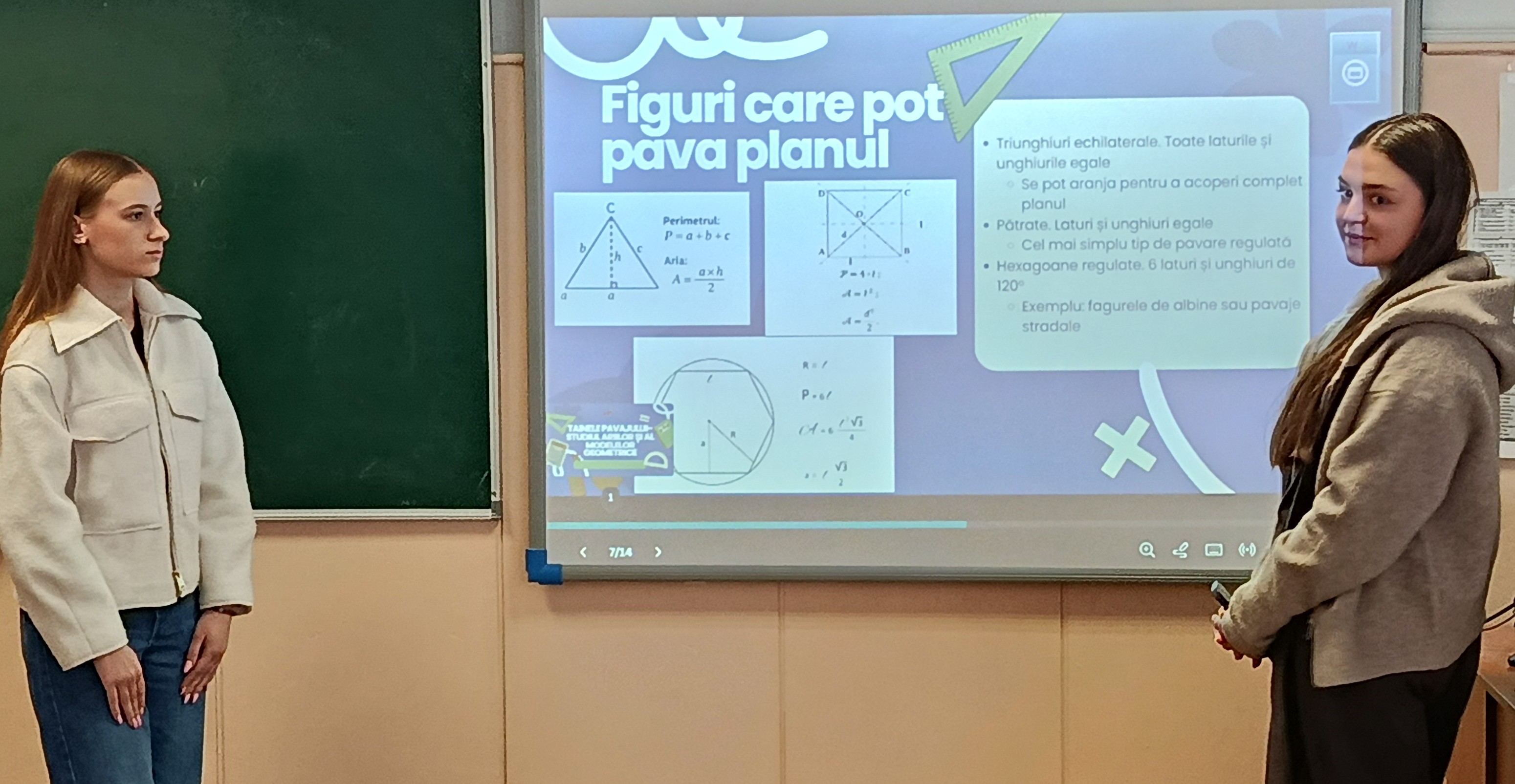 Sub îndrumarea doamnei profesoare de matematică Vrabie Elena, elevii au fost motivați să descopere frumusețea figurilor geometrice și să transforme cunoștințele teoretice în experiențe concrete de învățare. Prin pasiune și dedicare, doamna profesoară a reușit să apropie elevii de matematică și să le arate cât de valoroasă și prezentă este aceasta în lumea reală.
