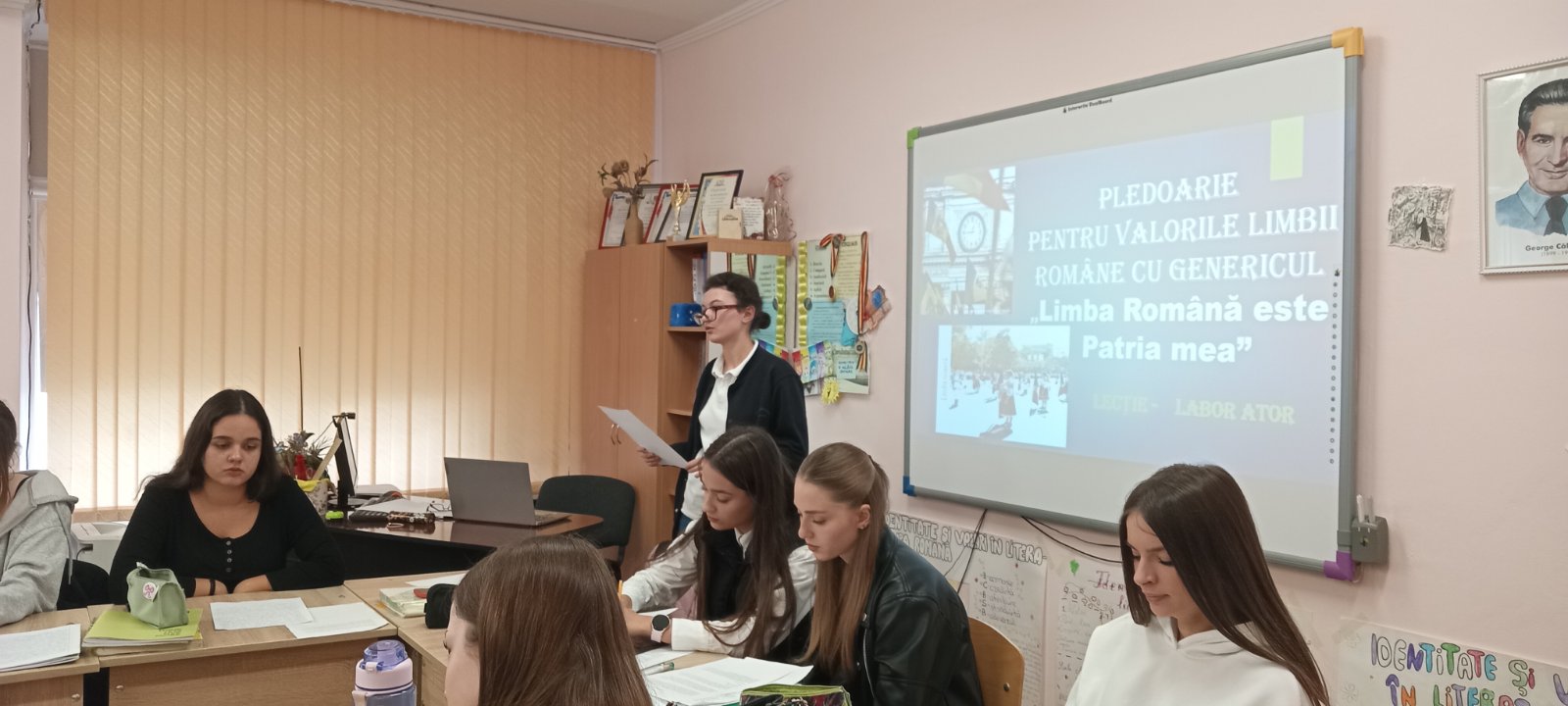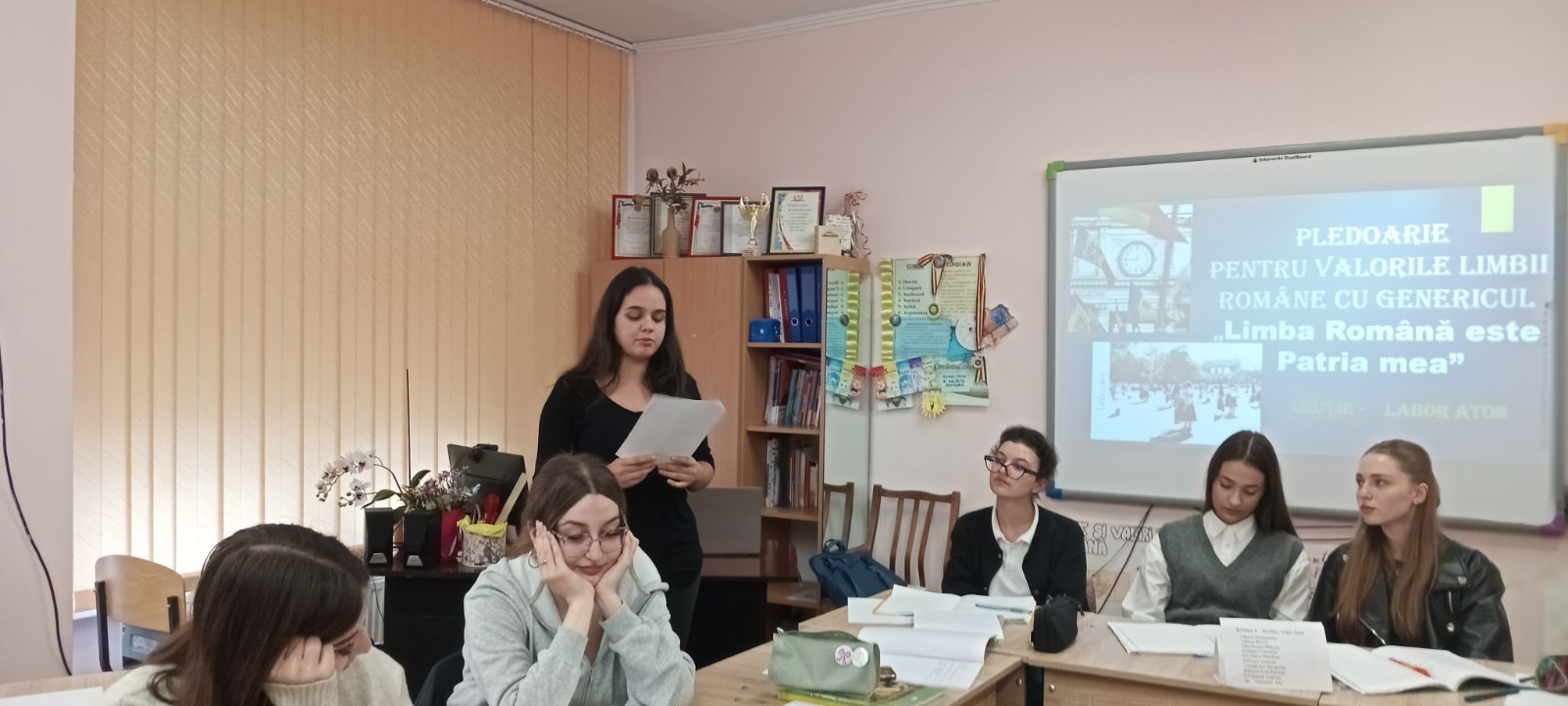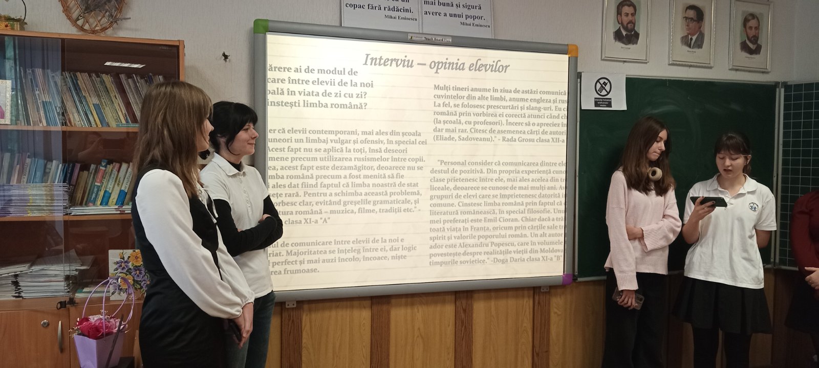 De aceea am discutat cu elevii claselor a X-a „A” și a XII-a „A”, împreună cu care convenim și construim procesul educativ la disciplina Limba și literatura română, și am preconizat activități care să finalizeze cu elaborarea unor produse creative, care să le descopere elevilor noi aspecte valorice ale limbii române – clasa a X-a, și ale limbii și literaturii române ca proces integrat, pentru elevii din clasa a XII-a „A”. Astfel, elevii din clasa a XII-a „A” au realizat niște studii a diverselor aspecte funcționale ale limbii române și și-au susținut observațiile, ideile și concluziile într-o conferință cu genericul „Pledoarie pentru Limba română, valoare spirituală de prim rang în sistemul de valori ale neamului”. Pledoariile au fost ascultate cu multă atenție pentru a fi evaluate și ierarhizate în formatul unui top al celor mai elocvente în susținerea unor idei personalizate, îndrăznețe și plauzibile. Elevii din clasa a X-a „A” au realizat prezentări și proiecte cu tematică diversă, care să demonstreze valorile limbii române în actualitate. Cele mai interesante proiecte au fost două cu tema comună: „Importanța Limbii Române în formarea și afirmarea personalității umane”, realizate prin aplicarea chestionarelor tematice și a interviului în cazul elevilor și doar a interviului în cazul profesorilor liceului nostru. Autorii proiectului au adunat un bogat material factologic, din care vom plasa ca dovadă doar o parte.