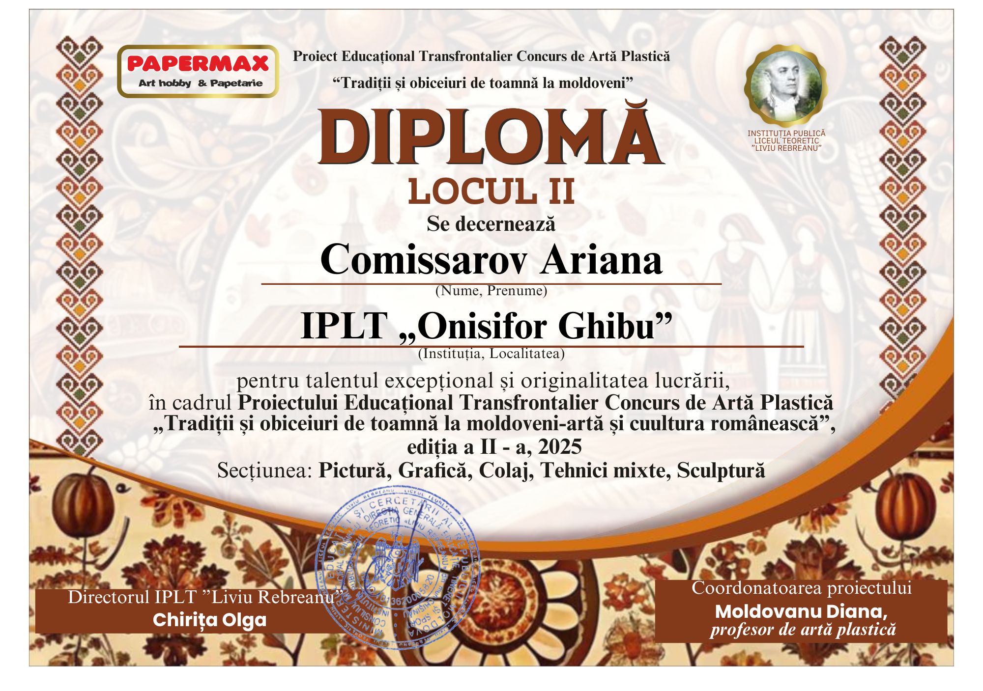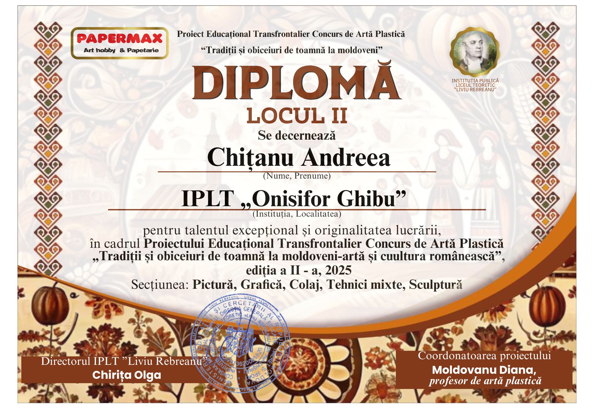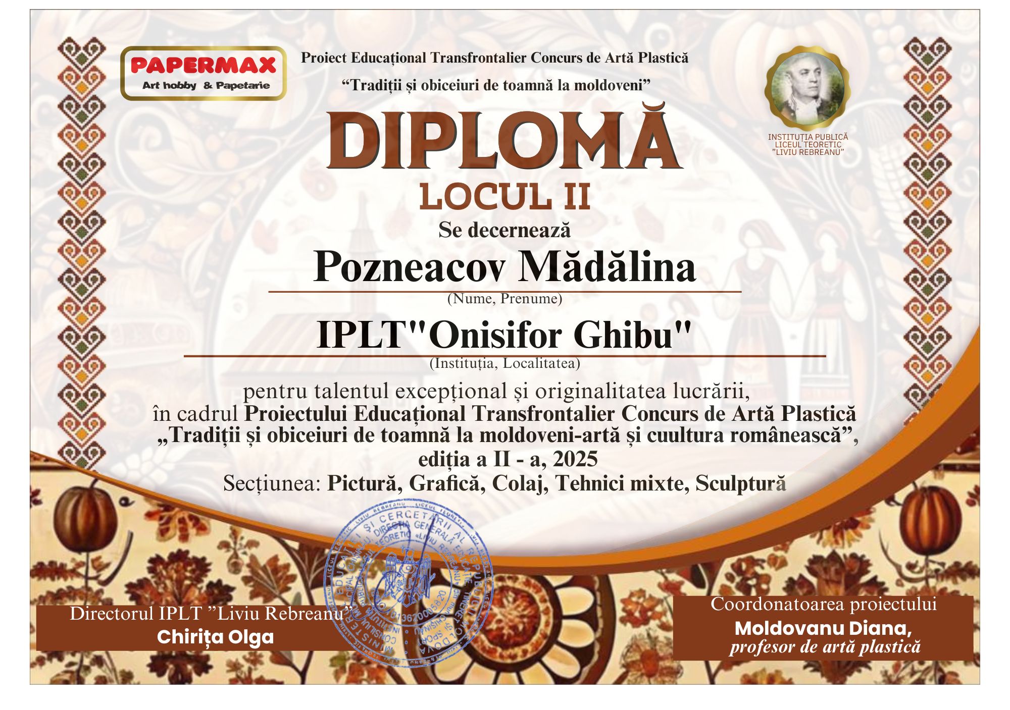 Suntem bucuroși pentru elevii noștri de la IPLT „Onisifor Ghibu”, care și anul acesta au participat în cadrul Proiectului Educațional Transfrontalier Concurs de Artă Plastică „Tradiții și obiceiuri de toamnă la moldoveni”, Ediția II-a, 2025, impresionând juriul prin creativitate, sensibilitate artistică și respect pentru tradițiile noastre autentice.