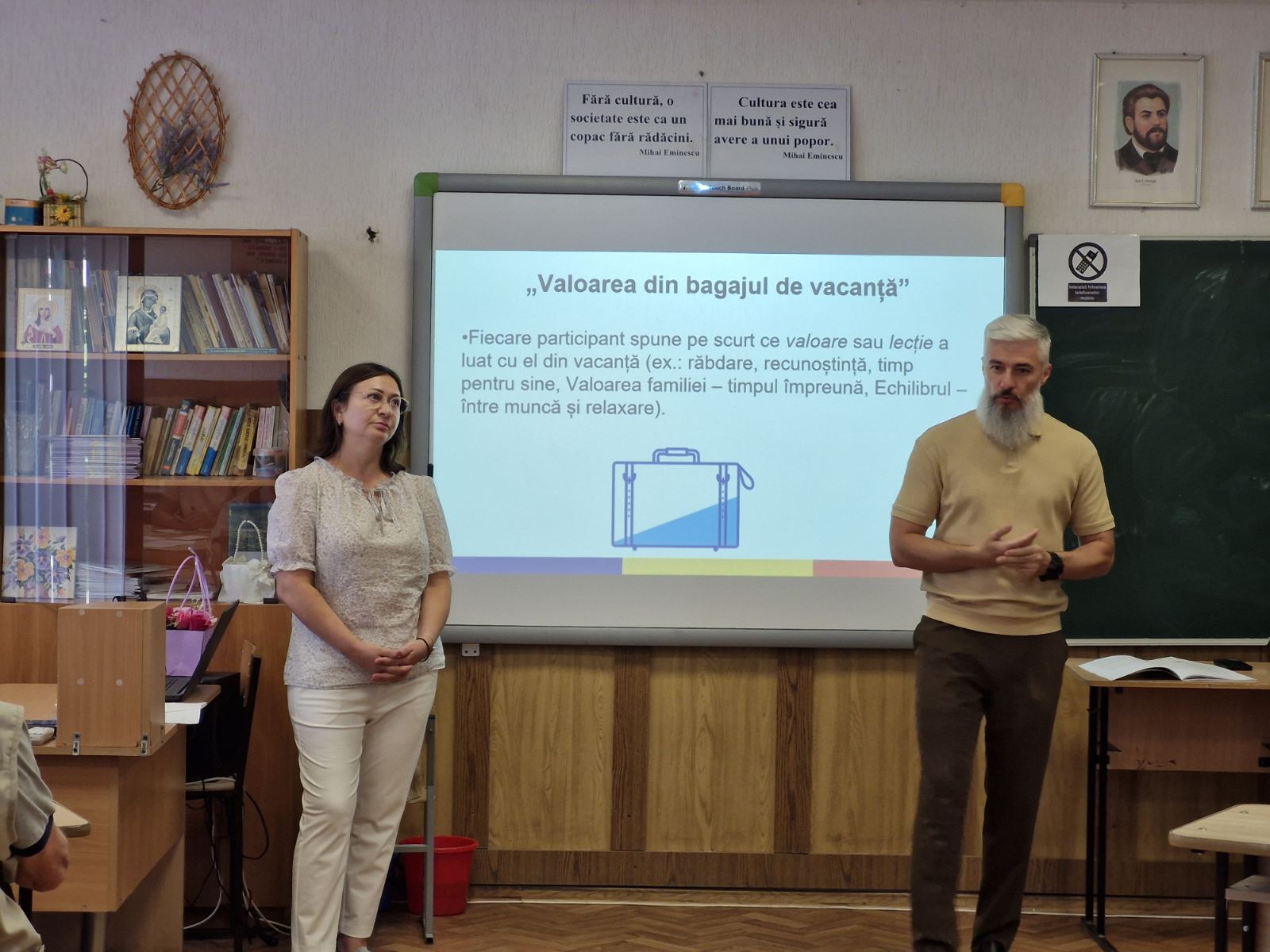 Tema activității a vizat dezvoltarea competenței axiologice – abilitatea cadrelor didactice de a identifica, recunoaște și aplica valorile și principiile fundamentale, atât în procesul educațional, cât și în viața de zi cu zi. Profesorii au fost implicați în lucrul pe echipe, unde au rezolvat sarcini aplicative, au analizat situații concrete de la clasă și au participat la dezbateri constructive pe tema valorilor promovate zilnic în educație.